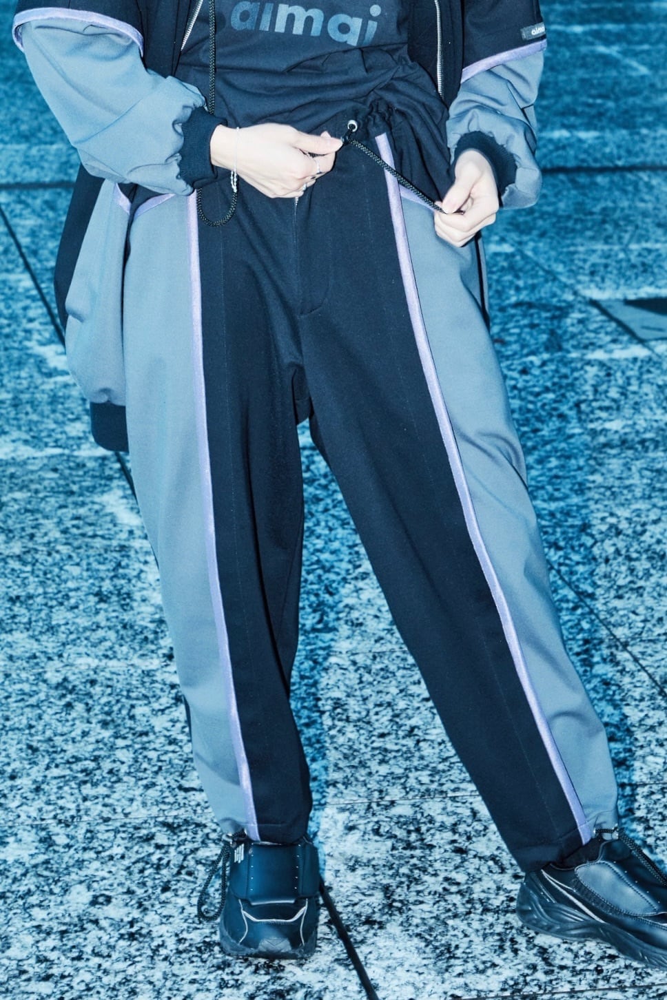 裾もドローコードで調整可能。絞るとシルエットが変わり、違った印象に。こちらではソックスを見せても可愛くなります。